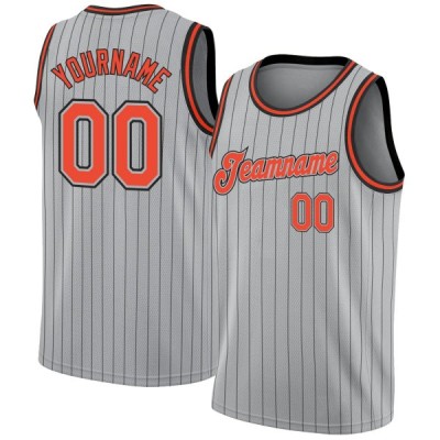 Silver Gray Black Pinstripe Orange-Black Authentic Basketball Jersey